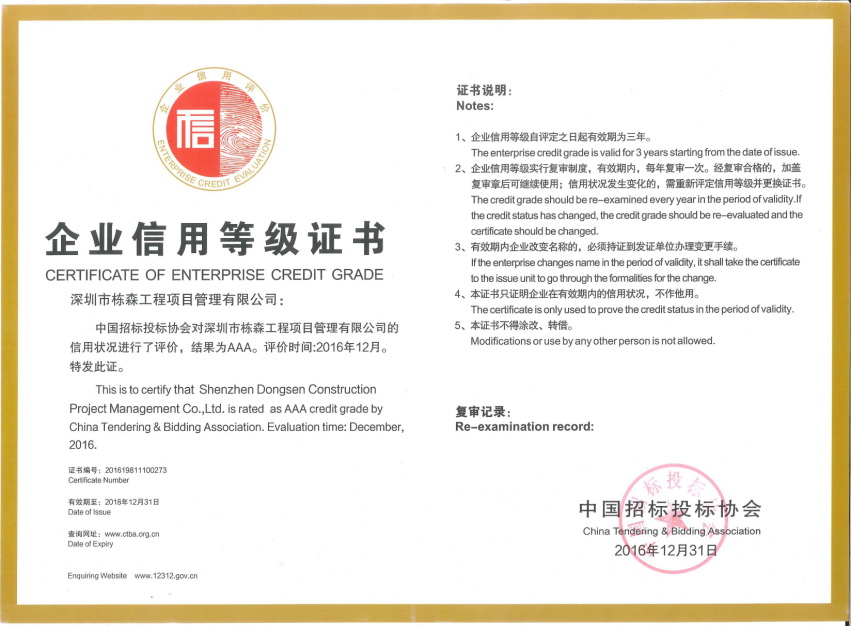 深圳市棟森工程項(xiàng)目管理有限公司本著"實(shí)在做事、厚道做人、感恩社會"的經(jīng)營理念,力求通過誠信為基石,保持公司健康的可持續(xù)性發(fā)展。