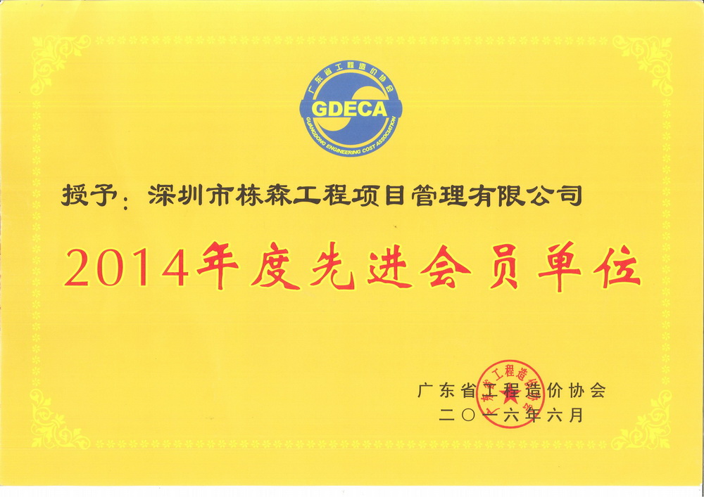 廣東省工程造價(jià)協(xié)會2014年度先進(jìn)會員單位